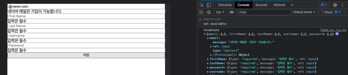 value: /^[A-Za-z0-9._%+-]+@naver.com/, // 사용된 정규식. 이 부분은 API를 통해서 체크도 가능해진다. ex) 있는 ID입니다. 같은 것.