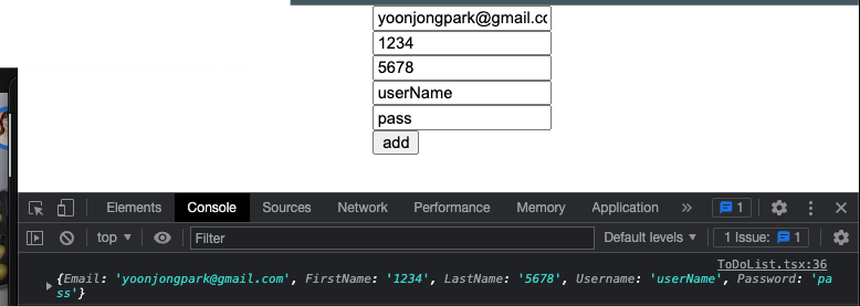 입력된 value 추적 (onChange value). 딱히 쓸 데는 없는 것 같다. 개발 시, console.log 대신 사용정도..?
